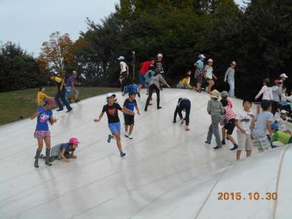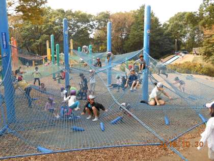 はじめに、公園の施設遊具で楽しみ、お弁当、長縄とびで過ごしました。