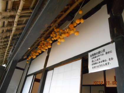 古民家の軒下には、干柿がずらりと並んでいます。