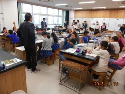 今回は、教科ごとに、給田小学校(社会、理科、図工)、烏山小学校(国語、英語活動、音楽、特別支援)、千歳小学校(算数、家庭科、体育)の3小学校に分かれ、授業研究→分科会→全体会という形で研修を行いました。