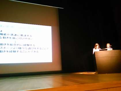 給田幼稚園は、「心身ともにたくましい幼児の育成〜多様な動きを引き出す運動遊び〜」をテーマに、これまで取り組んできた実践を発表しました。