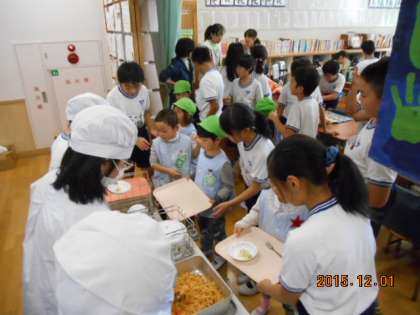 12月1日(火)、給田幼稚園のたけ組は、給田小学校へ行き、5年3組&4組との交流活動と給食体験をしました。