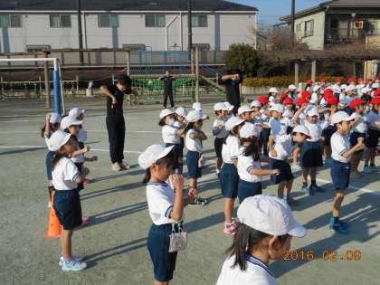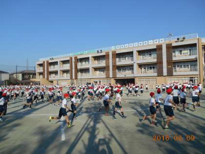 子どもたちも、教員も、朝の寒い中、半袖姿で元気に頑張っています。