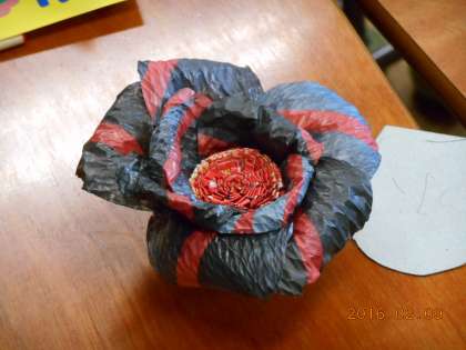地域の方にゲストティチャーに来ていただき、新聞の広告紙できれいな花を作りました。