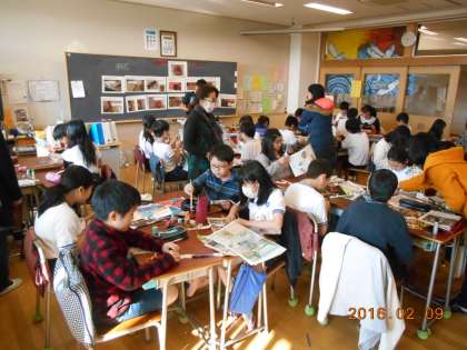 2月9日(火)、5年生は、6年生を送る会でプレゼントする胸花作りをしました。