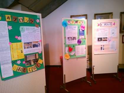 また、ロビーでは、各ブロックの研修会記録の展示がありました。