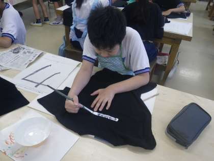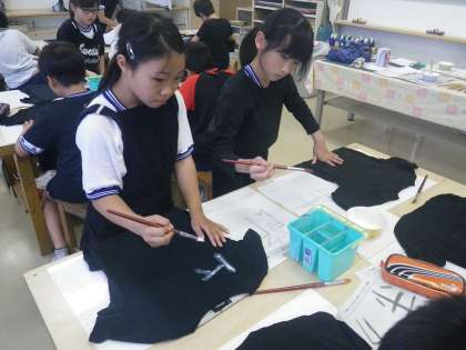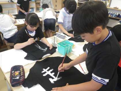 5年生 Tシャツに字をかきました。 公開日 2016/05/17 更新日 2016/05/17 5年 5年生は運動会でソーラン節を踊る時に、黒いTシャツを着ます。 各自で好きな字を選んで、シャツに後ろに書きました。 一人一人の思いがこもったTシャツができあがりました。 いいね(0)
