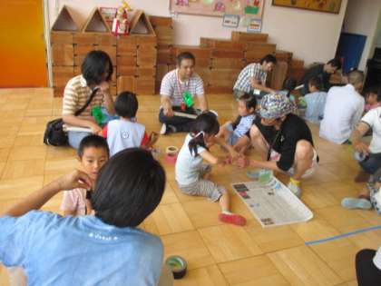 年長組は新棒を作って、お父さんと一緒にグループで遊び方を考えて発表し合いました。
