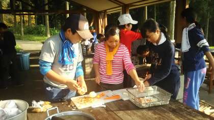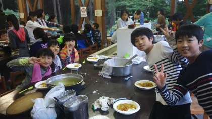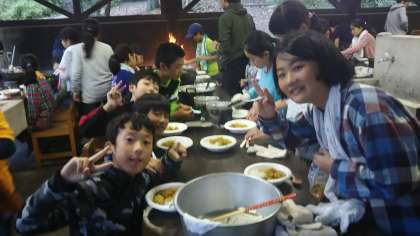 飯ごう炊さんに取り組みました。おいしいカレーを作るために、一生懸命!できあがった味はどうかな?