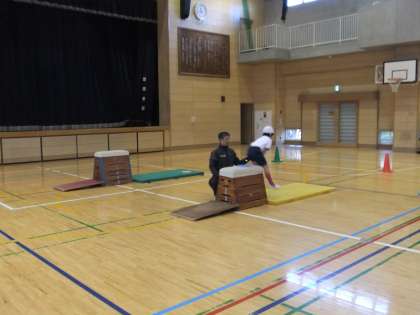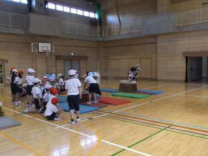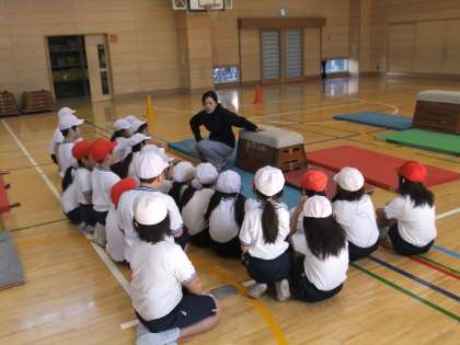 授業では、講師の先生が跳び箱を教えに来てくださいました。