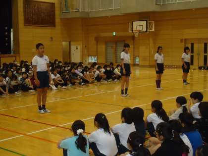 6年生各クラス代表が、クラスの鼓笛への思いや今までの努力を語り、