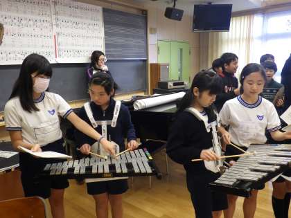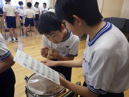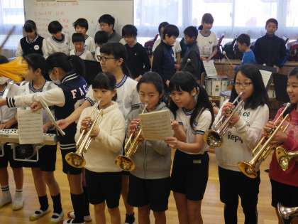 鼓笛の引継ぎ 公開日 2017/02/06 更新日 2017/02/06 5年 いま5年生は6年生から鼓笛を引き継いでいます。 6年生とペアになって楽器の取り扱い方、演奏の仕方、音を出すコツ、片付けのしかたなどをみっちりと教えてもらっています。 真剣なまなざしで活動に取り組んでいます。 いいね(0)