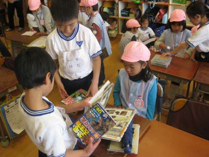 1年生で使う道具を教えてあげたり、校舎の案内をしたり、