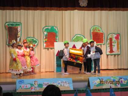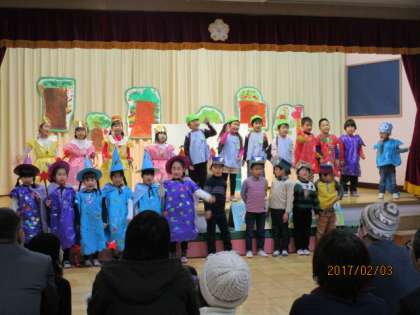 2月3日 年長子ども会(たけ組) 公開日 2017/03/02 更新日 2017/03/02 給田幼稚園 年長たけ組の子ども会を幼稚園のホールで行いました。たけ組は、「たけ組わんぱくだん」の劇をしました。友達と物語を考えたり、大きな声で台詞を言ったり、本番に向けて力を合わせて取り組みました。 当日は、自分の力を十分出し切ることができました。観に来て下さった保護者の皆様、ありがとうございました。 いいね(0)