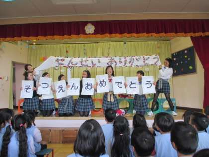 3/7 卒対お別れ会 公開日 2017/03/29 更新日 2017/03/29 給田幼稚園 卒業対策委員会主催の修了児へのお別れ会が幼稚園ホールでありました。クイズや歌など工夫を凝らした出し物に大興奮の子ども達。最後は年長児から担任の先生に花をプレゼント。ちょっぴり寂しい思いも感じた年長さんでした。年長保護者の皆様、素敵な会を開いていただきありがとうございました。 いいね(0)