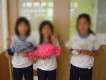 作品作りに取り組んでいます。出来上がったら、記念写真ではい、ポーズ!