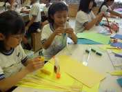 2本の紙テープを互い違いに折っていく作業に、どの子も楽しそうに取り組んでいました。