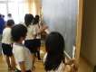 紙飛行機を実際に飛ばして飛んだ距離を測ったり、教室や校庭にある色々な物の長さを測ったりと、活動をたくさん行いました。グループで協力して取り組むうちに,巻き尺の使い方もずいぶん上手になってきました。