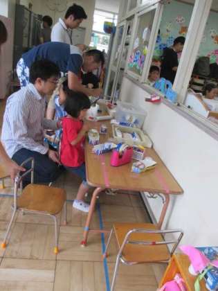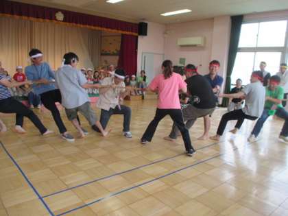 6/25 お父さんも遊ぼう会 公開日 2017/07/11 更新日 2017/07/11 給田幼稚園 各クラスで空き箱や牛乳パックを使い車や船を作ったり、綱引きや触れ合い遊びをしたりしました。普段園に来ないお父さんが園に来て一緒に遊べることに子どもたちは大喜び。たくさん遊ぶことができました。お父さんたちからも「園での様子がわかりよかったです」「子どもたちの成長を感じました」などの感想をいただきました。 いいね(0)
