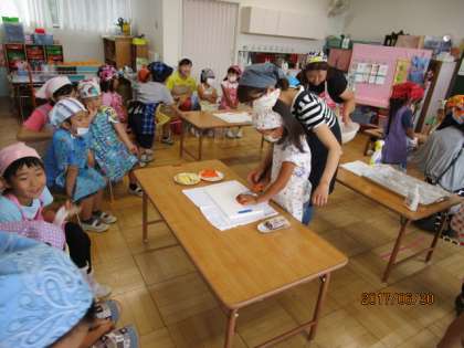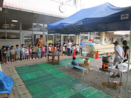 6/30 カレーパーティー 公開日 2017/07/11 更新日 2017/07/11 給田幼稚園 年長児が育てたジャガイモを収穫し、カレーパーティーをしました。年長児は野菜を包丁で切る調理体験をしました。かまどで薪を燃やし、大なべで作ったカレーの美味しさは格別でした。 いいね(0)
