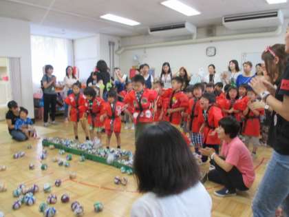 7月5日(水)イベント 公開日 2017/07/27 更新日 2017/07/27 給田幼稚園 ふたば会主催のイベント「給田なつまつり2017」が行われました。盆踊りやおみこし、オリジナルのうちわ作り、お化けの部屋、ボール投げなどお楽しみが盛りだくさんでした。親子で作った法被もとても素敵でした。 イベント係のみなさま、準備から当日まで本当にありがとうございました。日本女子体育大学の学生さんにもご協力いただきありがとうございました。 いいね(0)