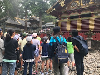 日光東照宮をガイドさんと一緒にまわりました。三猿、眠り猫、鳴き龍など様々なところを見学しました。