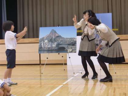 テーマパークの従業員の方を招いて、奉仕することや相手への思いやりを考えるワークショップを体験しました。