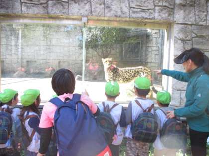 10月30日(月) バス遠足 公開日 2017/12/13 更新日 2017/12/13 給田幼稚園 大型バスに乗って多摩動物公園に行きました。図鑑や絵本で見た動物に会え、「あ!チーターだ!」と目を輝かせて見たり、「ライオンさーん!」と元気いっぱいに呼んだりする姿が見られました。坂などアップダウンのある道をたくさん歩き、最後まで友達と手をつないで楽しく動物を見ることができました。たくさん歩いたせいか、帰りのバスではぐっすりと夢の中の子どもたちでした。 いいね(0)