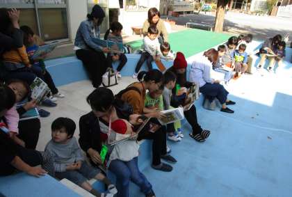保育室や廊下、プールサイドなど、好きな場所を選び、親子で絵本を読みました。大好きなお父さんやお母さんに絵本を読んでもらってうれしそうな子どもの表情や、親子で一緒にお話の世界を楽しんでいる様子が見られました。「外で絵本を読むことはなかなかないので、暖かいお日様の下でのんびりと読み聞かせができて幸せなひと時でした」「家でも絵本を一緒に読む時間をつくりたいと思います」など保護者から感想も頂きました。