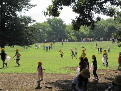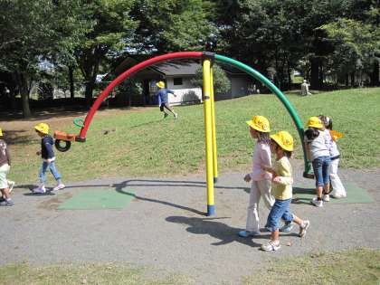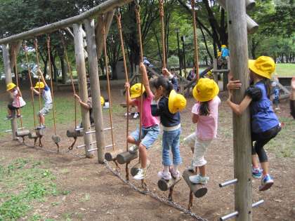 緑豊かな芝生広場やアスレチックでのびのびと遊びました。