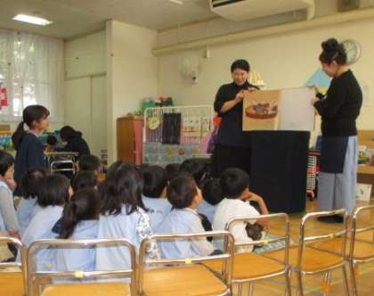 12月6日 虹さんのお話し会 公開日 2017/12/20 更新日 2017/12/20 給田幼稚園 給田小学校の図書ボランティア「虹」さんのお話し会がありました。絵本や大型絵本、紙芝居の読み聞かせをして下さり、子どもたちは絵本の世界に夢中でした。手遊びやエプロンシアターもとても喜んでいました。ありがとうございました。 いいね(0)