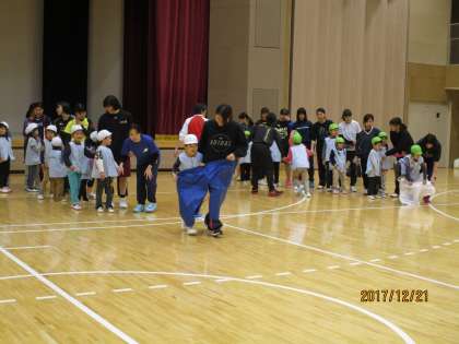 12月21日(木) 年長元気アップタイム(日本女子体育大学訪問) 公開日 2018/01/04 更新日 2018/01/04 給田幼稚園 年長児が日本女子体育大学を訪問し、森田陽子先生より運動遊びの指導を受けました。広い体育館で、大学1年生の学生さんたちとデカパンリレー、パラバルーン、綱とりなどで楽しく体を動かしました。 いいね(0)