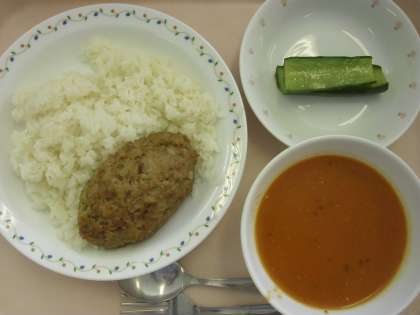 今日は、給食用に、さらに食べやすい献立に手直ししました。キョフテはクスクス(パスタの原料のセモリナ粉でつくられています)を入れ、カレー粉で味付け。ふんわりとした大きなハンバーグが出来上がりました!スープはレンズ豆や野菜を入れてよーく煮込んで、ミキサーにかけてとろりとしたスープに出来上がりました。ミキサーにかけることで、苦手な食材が見えなくなり、栄養たっぷりのスープを食べることができます。