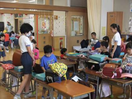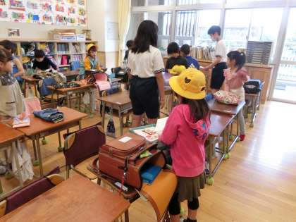 6年生は4月から、1年生の朝の準備や掃除の手伝いを行っています。