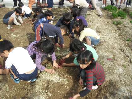 いろいろな形のお芋が見つかり、みんな嬉しそうです。