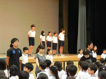 本日の集会で、伝言ゲームをしました。子ども達は正解は何か、どきどきしていました。とても楽しそうでした。