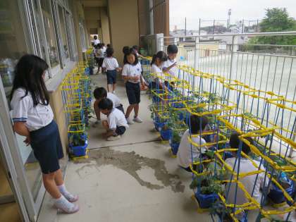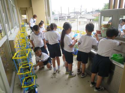 2年生は、毎日夏野菜の水やりを頑張っています。