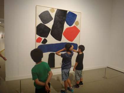 事前に学校で美術鑑賞教室の出張授業があり、村井正誠さんの「ふたり」という作品を観ていましたが、美術館で本物を観ると、「大きい!」「本物のほうが色がきれい!」などとても驚いていました。