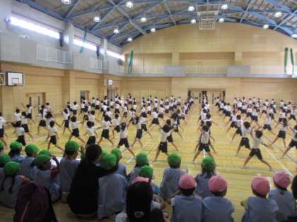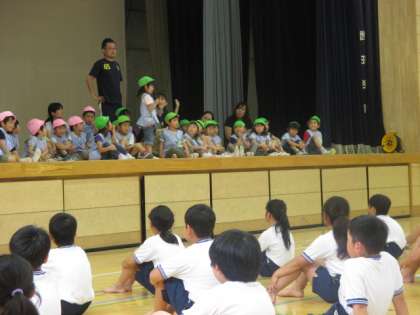 5月17日(木) 5年生交流 公開日 2018/06/14 更新日 2018/06/14 給田幼稚園 年長児が給田小学校5年生の「ソーラン節」を見せてもらいました。お兄さんお姉さんの大迫力のソーラン節に見入っていました。園に帰ってさっそく踊る姿もありました。とてもいい刺激をもらった年長さんでした。 いいね(0)
