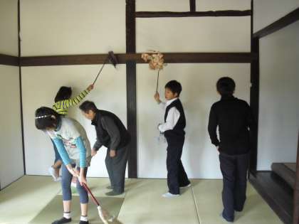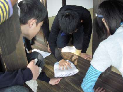今日は月に1回の保存会の方々との古民家そうじの日です。はたきのかけ方や畳のはき方、ぬか袋を使った縁側の磨き方など、昔の知恵を教えていただきました。おかげ様で古民家が一層きれいになりました。次回は大掃除です。障子の張り替えを計画しています。