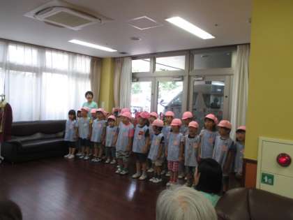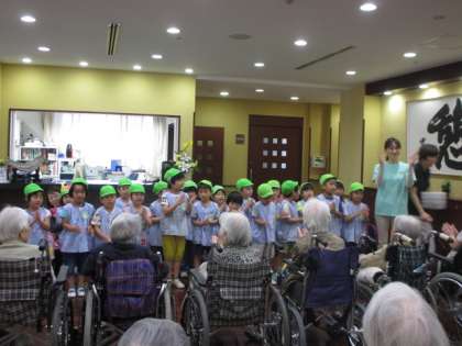 6月7日(木) 年長給田乃杜訪問 公開日 2018/07/11 更新日 2018/07/11 給田幼稚園 年長児が特別養護老人ホーム「せたがや給田乃杜」を訪問しました。「カタツムリ」の歌を披露したり、「しあわせなら手をたたこう」の手遊びをしたりして、和やかな雰囲気の中で交流をすることができました。 いいね(0)