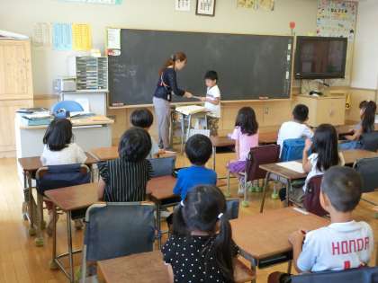 各教室で、児童に通知表が渡されました。1年生は初めて受け取りました。受け取るときとても緊張していました。