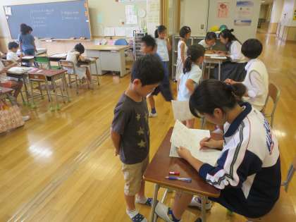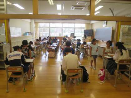 烏山中学校の生徒がボランティアで丸付けや苦手なところを教えるのを手伝ってくれました。