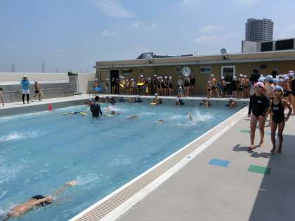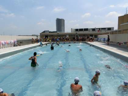 昨日は気温が高いため、プールは中止にしました。今日は、予定通りプールを実施しました。子ども達は、水温が高いので寒さを感じることなく、のびのびと泳いでいました。明日もプールを実施する予定です。多くの子ども達が参加してくれたらと思います。