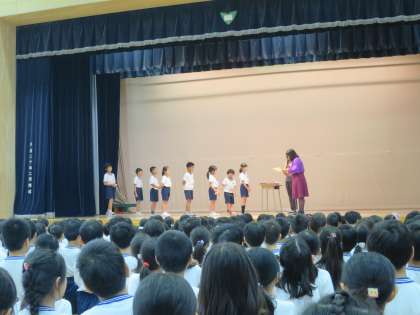 朝会 公開日 2018/10/15 更新日 2018/10/15 行事 10月15日、久しぶりの月曜日の登校でした。 朝会では、たくさん届いていた表彰状の表彰を行いました。 入退場の鼓笛は、6年1組の演奏でした。 いいね(0)