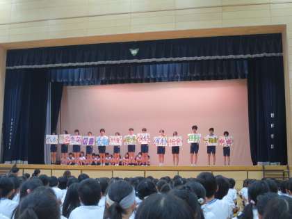 10月26日の集会は、代表委員会の児童と各委員長の紹介集会でした。