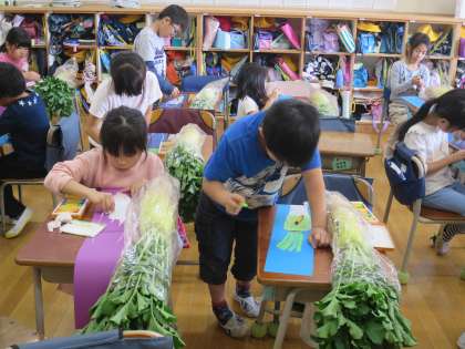 学校に帰ってから、自分のぬいた大根の絵をかきました。