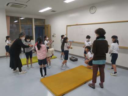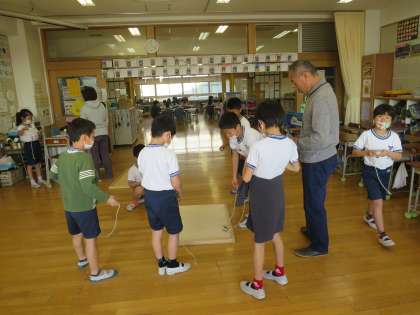 1月17日の3・4時間目に、2年生は祖父母・地域の方に昔遊びを教わりました。