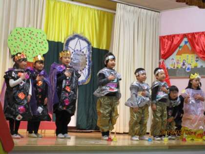 年長児が力を合わせて劇を発表しました。大道具小道具も手作りの、素敵な劇になりました。