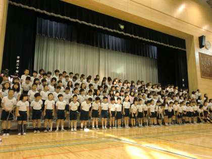 今日の音楽朝会は、2年生による「たからもの」の合唱で始まりました。
