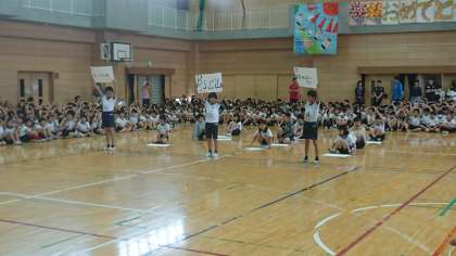 4.19一年生を迎える会 公開日 2019/04/19 更新日 2019/04/19 行事 一年生を迎える会を行いました。四年生の学校紹介、代表委員会による学校クイズ、六年生からの合奏。和やかな会で、一年生を迎えることができました。 いいね(0)